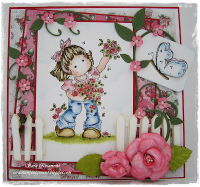 I`ve coloured with distress inks and used the Magnolia Summer Memories rose garden papers to compliment her.